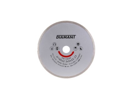Diamantový kotouč DIAMANT, provedení: PLNÝ - celoobvodový, kvalitní diamantová vrstva s vysokým obsahem diamantového prachu, přesné zpracování - napojení na nosný disk kotouče odolávající vysokým teplotám, použití: určený pro mokré i suché řezání dlažby a obkladů, betonu, cihel, zdiva, žuly, mramoru, kamene, skla, keramiky, balení: blistr s eurootvorem, přiložen redukční kroužek z 22,2 na 20 mm, rozměry: uvedeny v názvu výrobku.