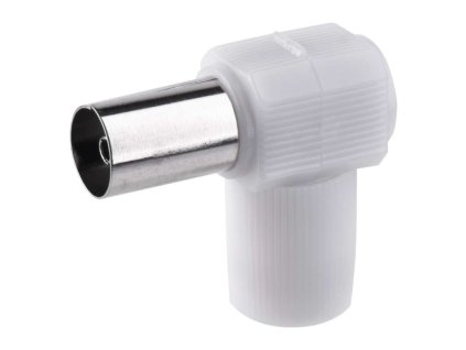 IEC konektor úhlová zásuvka je určen k napojení na koaxiální kabel a má bílou barvu. Prodává se po 10 ks a je plastový.