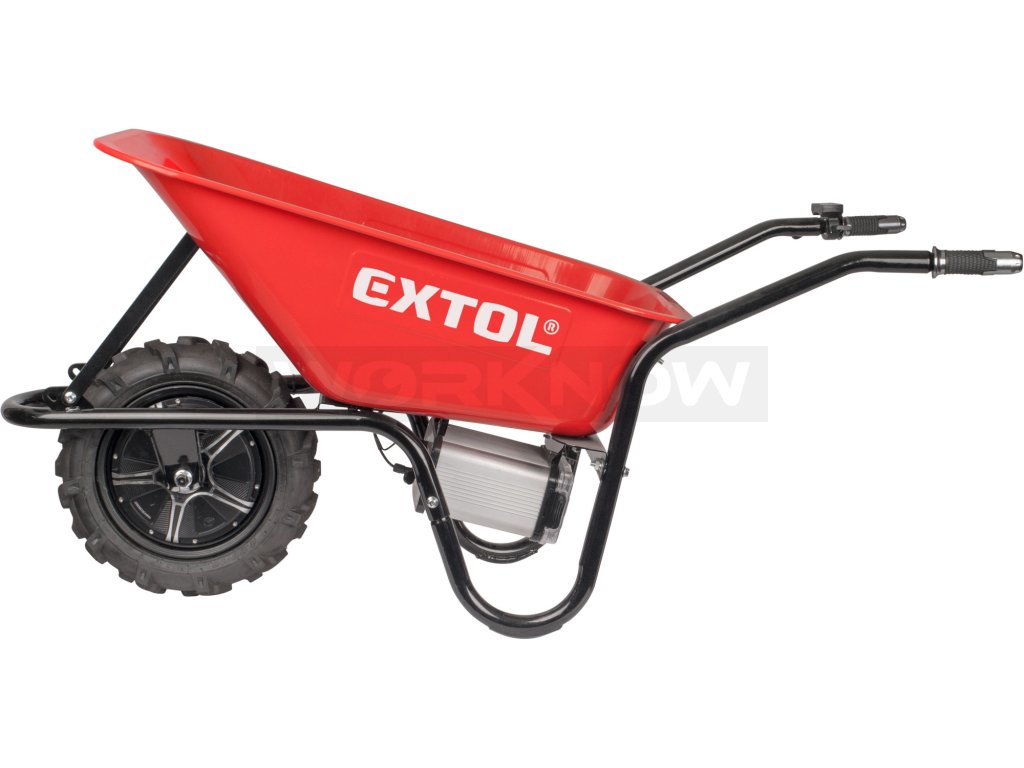Přepravní aku kolečko s pomocným elektrickým pohonem je určeno pro přepravu tuhých, sypkých nebo hustých materiálů. Díky elektrickému pohonu se výrazně urychlí přeprava materiálu a zároveň sníží únava obsluhy, což významně zvýší produktivitu práce. Použití Li-ion baterie výrazně snižuje hmotnost kolečka oproti kolečkům, které jsou poháněny olověnými bateriemi. Kolečko má na pravé rukojeti ovládací panel a pomocí palce si může nastavit okamžitou rychlost jak do předu, tak dozadu. Na ovládacím panelu lze nastavit jízdu dopředu nebo dozadu, brzdu, normální rychlost nebo Turbo. Pro běžný provoz se používá normální rychlost, Turbo lze použít při jízdě do kopce, v obtížném terénu nebo při přepravě těžšího nákladu. Kolečka jsou poháněná nejmodernějším „brushless" motorem. Tento nový typ motoru má vyšší životnost, je výkonnější a má menší spotřebu el. energie než klasické motory s uhlíkovými kartáči. Pokud je to nutné, lze motor kompletně vypnout a používat kolečko jen na ruční pohon. Elektrická brzda se používá pokud potřebujete zamezit pohybu kolečka na místě. Pneumatika má hluboký vzorek do terénu. Kolečko je dodáváno s kovovou korbou o objemu 80l, bezešvě lisovanou z jednoho kusu plechu. Pro přepravu lehčího a objemného nákladu lze dokoupit samostatně prodávanou plastovou korbu o objemu 100l. Všechny náhradní korby mají předvrtané díry pro snadnou montáž. Kolečko má krytí IP64, což mu umožňuje dočasnou práci ve vlhkém prostředí, případně umývání vapkou, ale není určeno k trvalému provozu nebo skladování ve vlhkém prostředí. Zdrojem elektrické energie je silná 40V/6Ah Li-ion baterie s LED displejem ukazujícím její úroveň nabití a okamžité napětí baterie. Vyjímatelná baterie umožňuje její snadné nabíjení a skladování v suchém a zatepleném prostředí, což je velmi důležité pro její životnost. Baterie má ochranu proti vybití pod minimální úroveň, před přetížením při nadměrném odběru proudu, přebitím, zkratem a náhlému zvýšení teploty při práci. Pro běžnou práci dostačuje jeden 6000mAh akumulátor, který můžete rychle nabít v rychlonabíječce, pro náročnější nebo delší práci můžete použít další nabitý akumulátor. Díky použité Li-ion technologii je ho možné kdykoliv dobíjet, aniž by se tím snižovala jeho kapacita. Li-ion akumulátor ztrácí energii vlivem samovybíjení velmi pomalu a vydrží dlouho nabitý a připravený k použití.- silný 500W motor