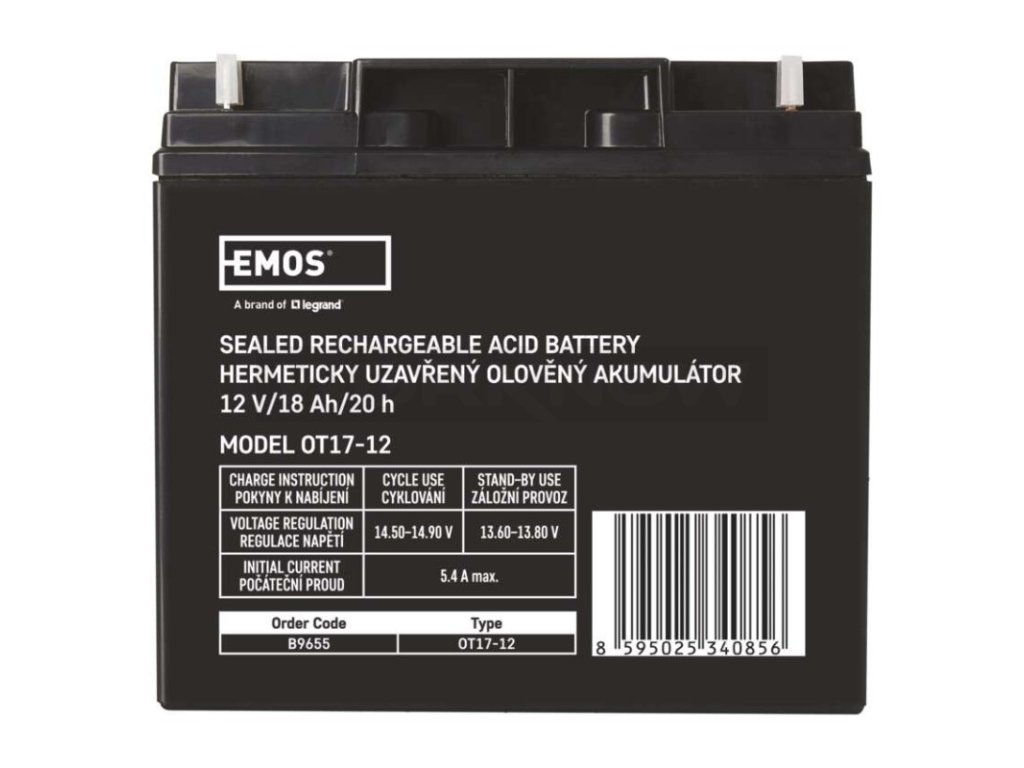 Akumulátor EMOS je vhodný jako náhradní baterie pro záložní zdroje UPS, RBC kity, elektronické systémy EZS, EPS, záložní systémy výtahů apod.