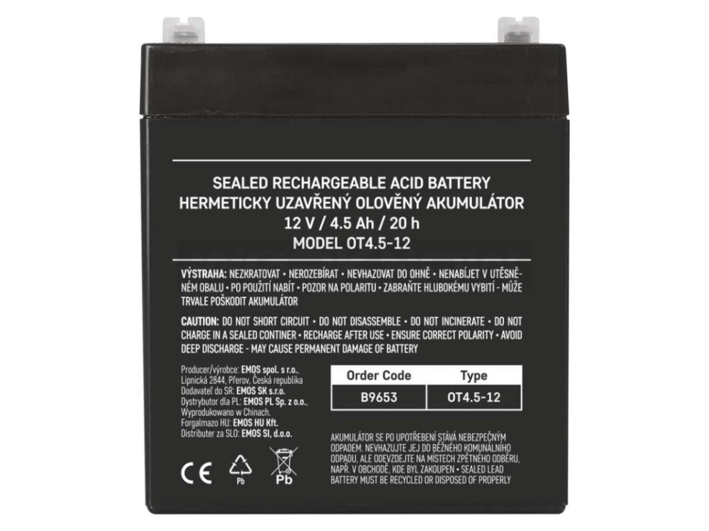 Bezúdržbový olověný akumulátor 12 V/4,5 Ah, faston 4,7 mm