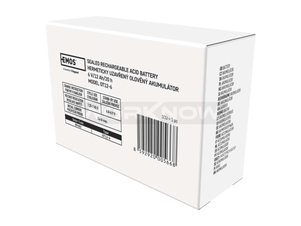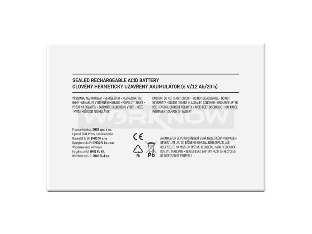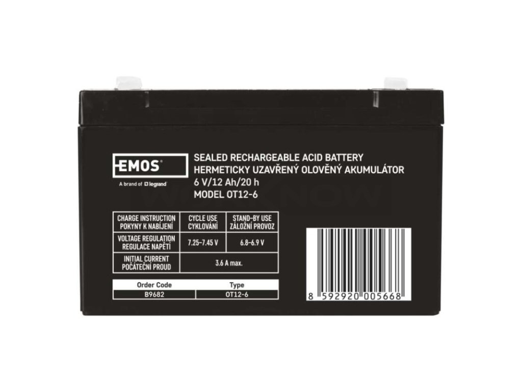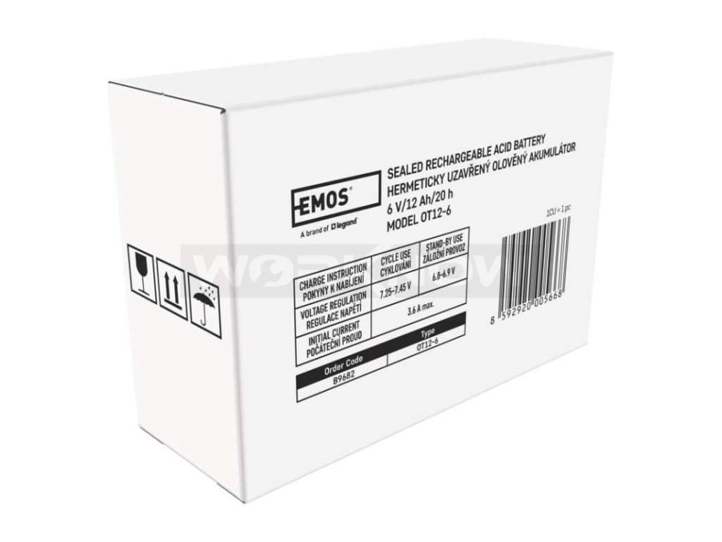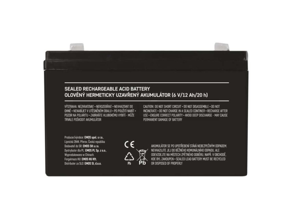 Akumulátor EMOS je vhodný jako náhradní baterie pro záložní zdroje UPS, RBC kity apod. Bezúdržbový, ventilem řízený olověný akumulátor v provedení AGM umožňuje být používán v libovolné poloze.