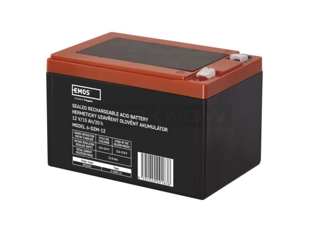 Akumulátor EMOS typ 6-DZM-12 má extra silnou mřížku článků a ta zajišťuje velmi vysokou cyklickou odolnost (okolo 800 cyklů při 50% D.O.D = hloubka vybití 50%), což tento akumulátor předurčuje pro aplikace, kde dochází k častému hlubokému vybíjení - cyklování. Je tedy ideální volbou pro pohony elektromotorů. Bezúdržbový, ventilem řízený olověný akumulátor v provedení AGM umožňuje být používán v libovolné poloze.