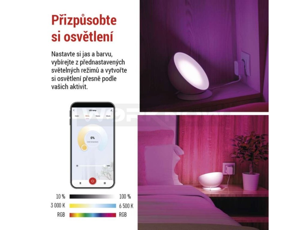 GoSmart LED ambientní lampa, bílá, teplá bílá–studená bílá/ RGB, WiFi