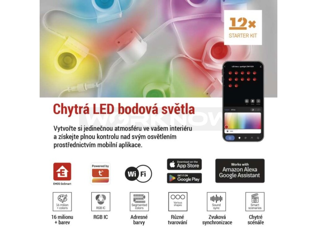 GoSmart LED bodové svítidlo – řetěz 255 cm, 12 dílů, 7 W, RGBIC+CCT, stmívatelné, WiFi