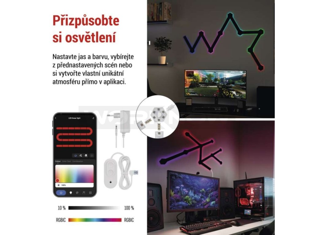 GoSmart LED svítidlo Lines černé, 9 dílů, 34 W, RGBIC stmívatelné, WiFi
