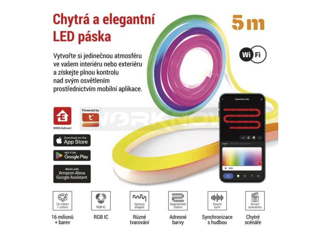 GoSmart ohebný LED pásek NEON bílý, 5 m, 33 W, RGBIC stmívatelný, WiFi