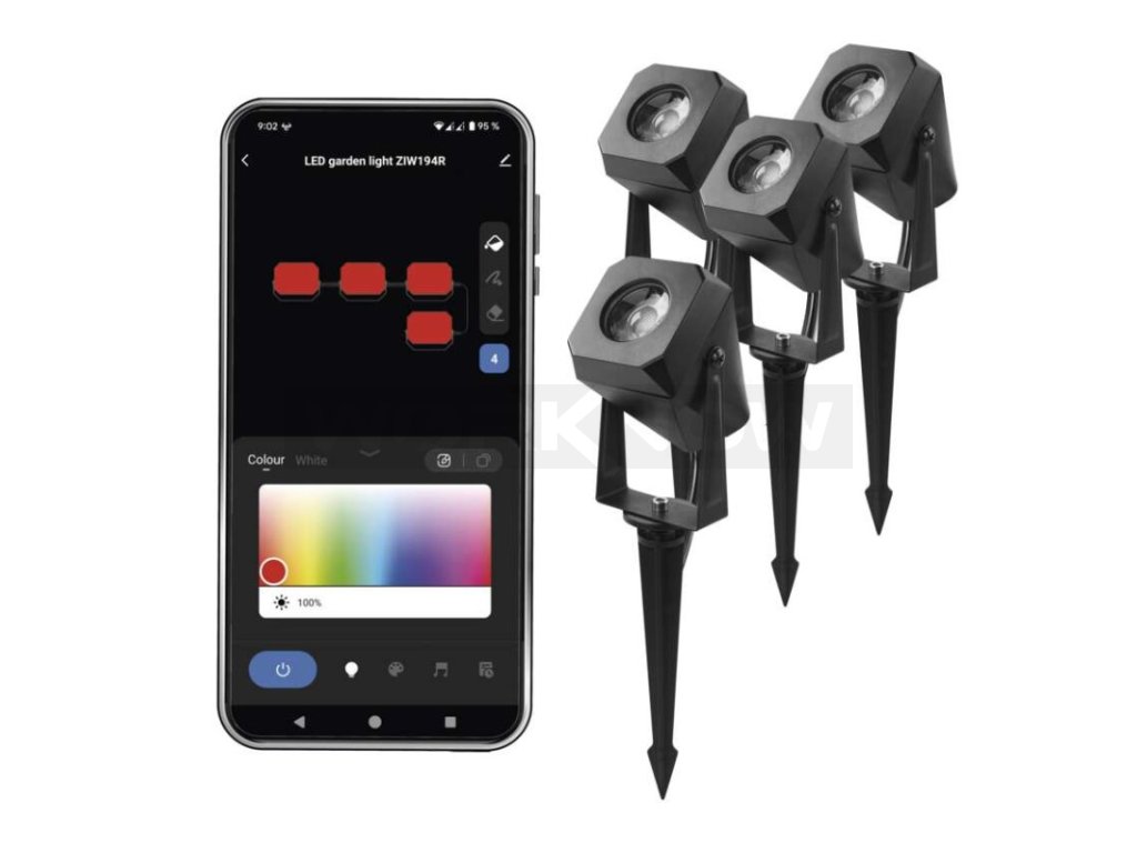 GoSmart venkovní LED bodové světlo, startovací sada, 4 díly, 7 W, RGBIC stmívatelné, WiFi
