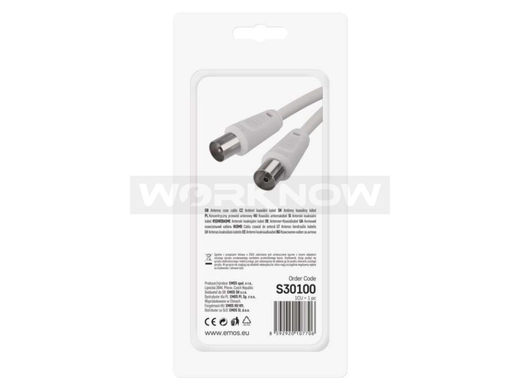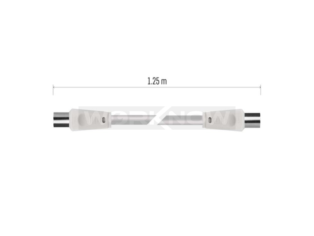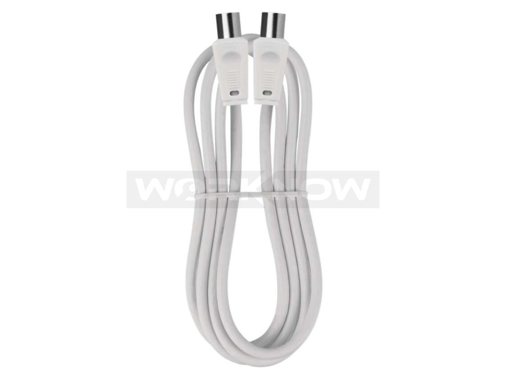 Anténní koaxiální kabel s vidlicí a zásuvkou IEC. Kabel má dvojité stínění pro redukci elektromagnetického rušení. Délka kabelu je 1,25 m. Koaxiální kabel je vhodný pro SAT, DVB-T, ANT, DECODER, FLAT TV a TV.
