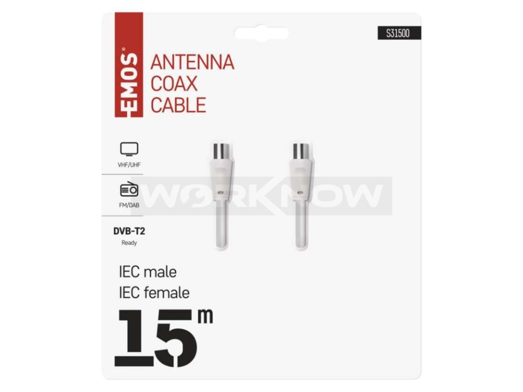 Anténní koaxiální kabel s vidlicí a zásuvkou IEC. Kabel má dvojité stínění pro redukci elektromagnetického rušení. Délka kabelu je 15 m. Koaxiální kabel je vhodný pro SAT, DVB-T, ANT, DECODER, FLAT TV a TV.