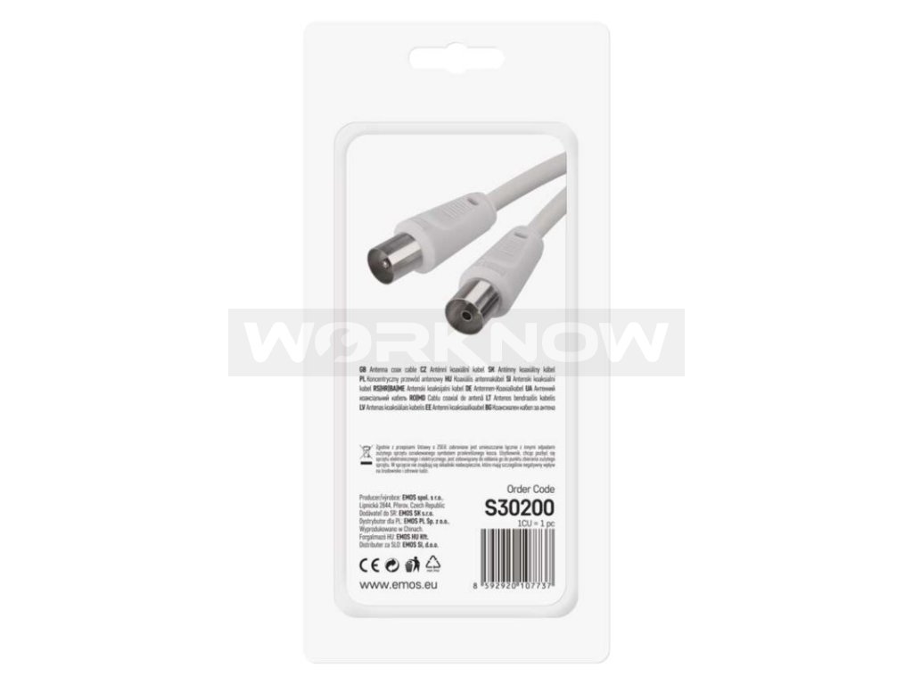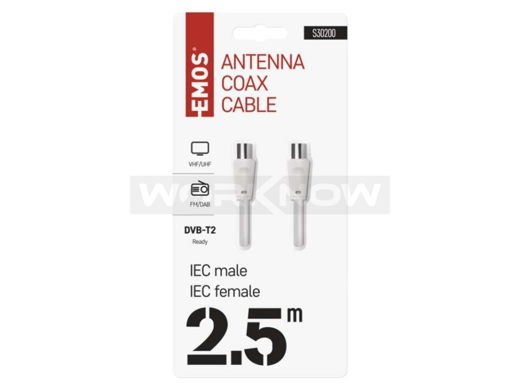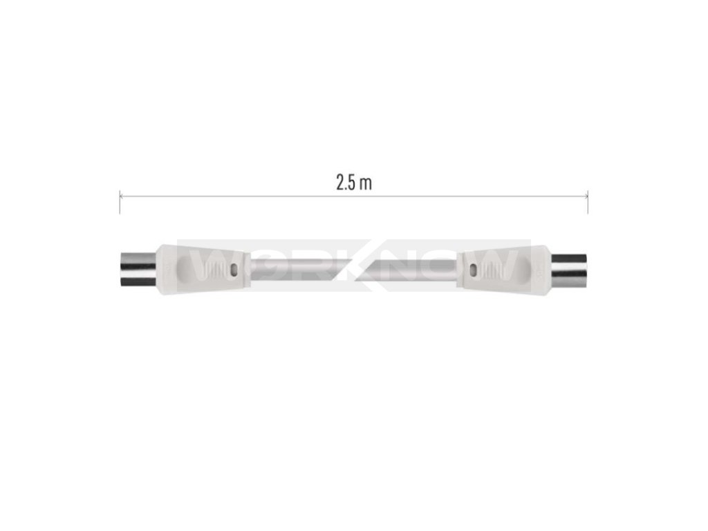 Anténní koaxiální kabel s vidlicí a zásuvkou IEC. Kabel má dvojité stínění pro redukci elektromagnetického rušení. Délka kabelu je 2,5 m. Koaxiální kabel je vhodný pro SAT, DVB-T, ANT, DECODER, FLAT TV a TV.
