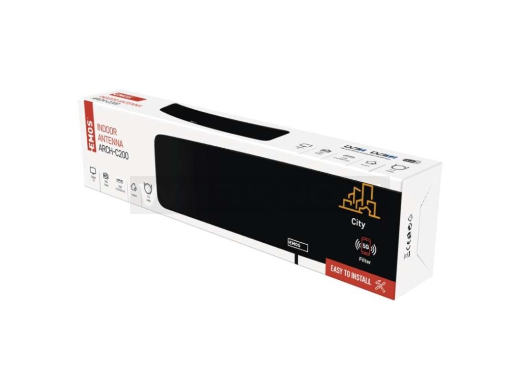 Hledáte pokojovou anténu, která vám zaručí ničím nerušené sledování vašich oblíbených pořadů a která si vás navíc získá svým elegantním designem? Pak jste ji právě našli v pokojové anténě EMOS ARCH-C200. Anténa s rozměry 8 × 345 × 77 mm určena pro příjem DVB-T i DVB-T2 vyniká svým moderním vzhledem, díky němuž si ji snadno spletete s designovým doplňkem.