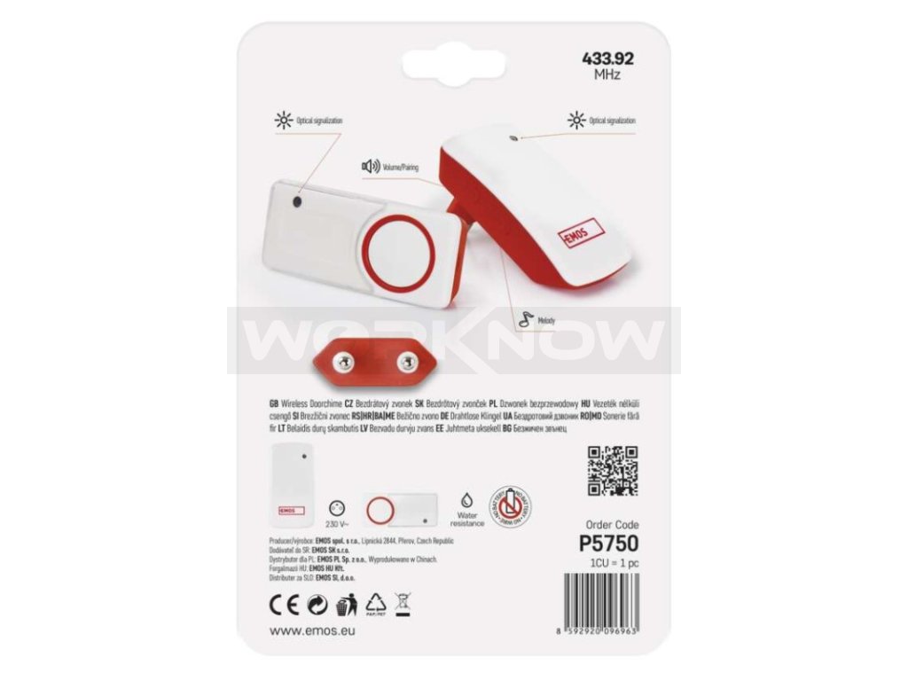 Moderní domovní zvonek EMOS v elegantních barvách bílé a červené má zaoblené elegantní tvary. Tento produkt má originální design vytvořený přímo na míru. Design a technické provedení byly navrženy našimi odborníky v České republice (EU). Tento jedinečný tvar tedy nenajdete u žádného jiného produktu.