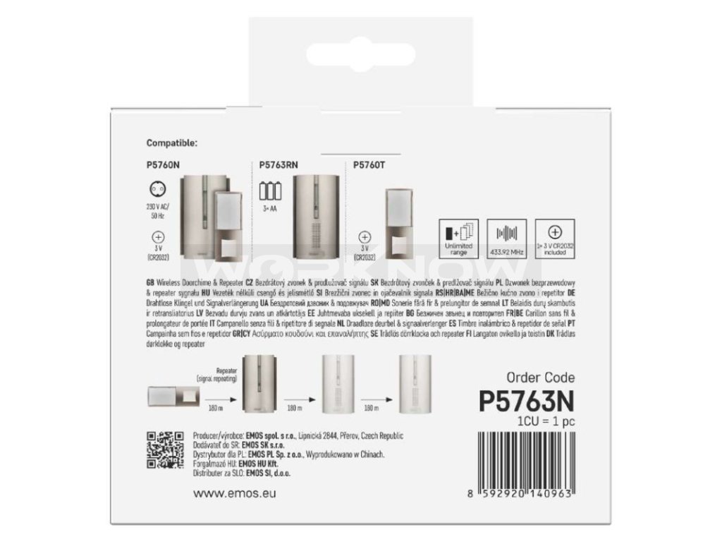 Domovní bezdrátový zvonek P5763N na 3× AA, s možností prodloužení signálu