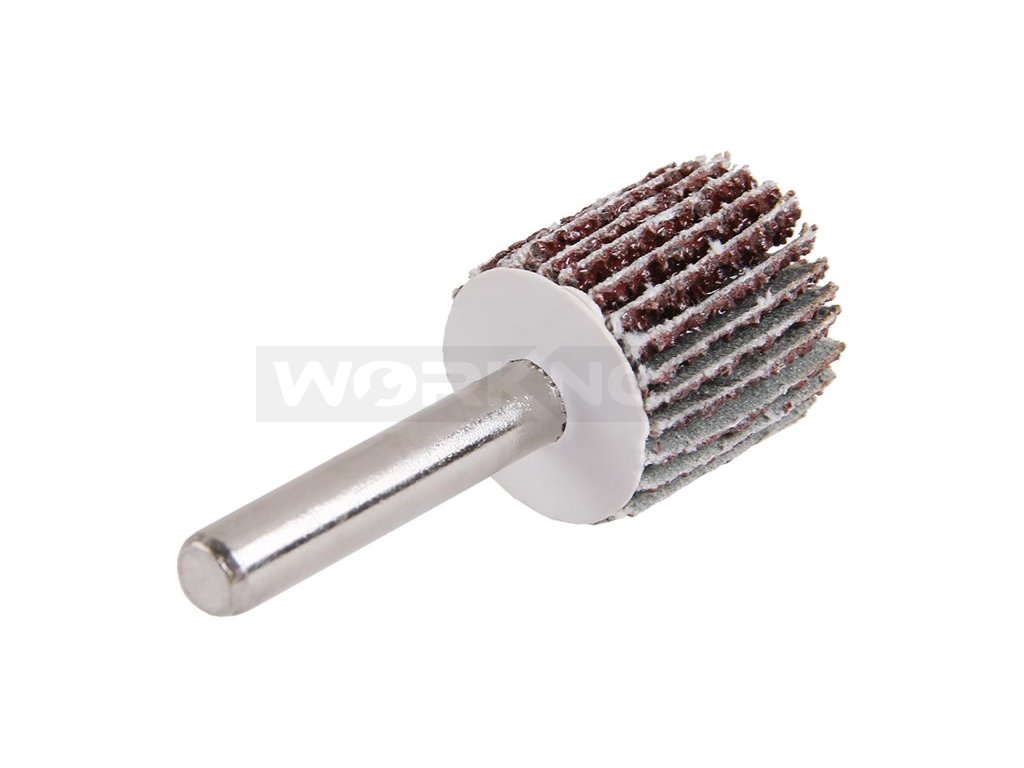Brusný lamelový kotouč na stopce, zrnitost: 100 druh zrna: oxid hlinitý pojivo: umělá pryskyřice podkladový materiál: pružná tkanina - 100% bavlna (240-260g/m2) použití : broušení, obrušování, odrezování, odstraňování nátěrů.Doplňkové parametry