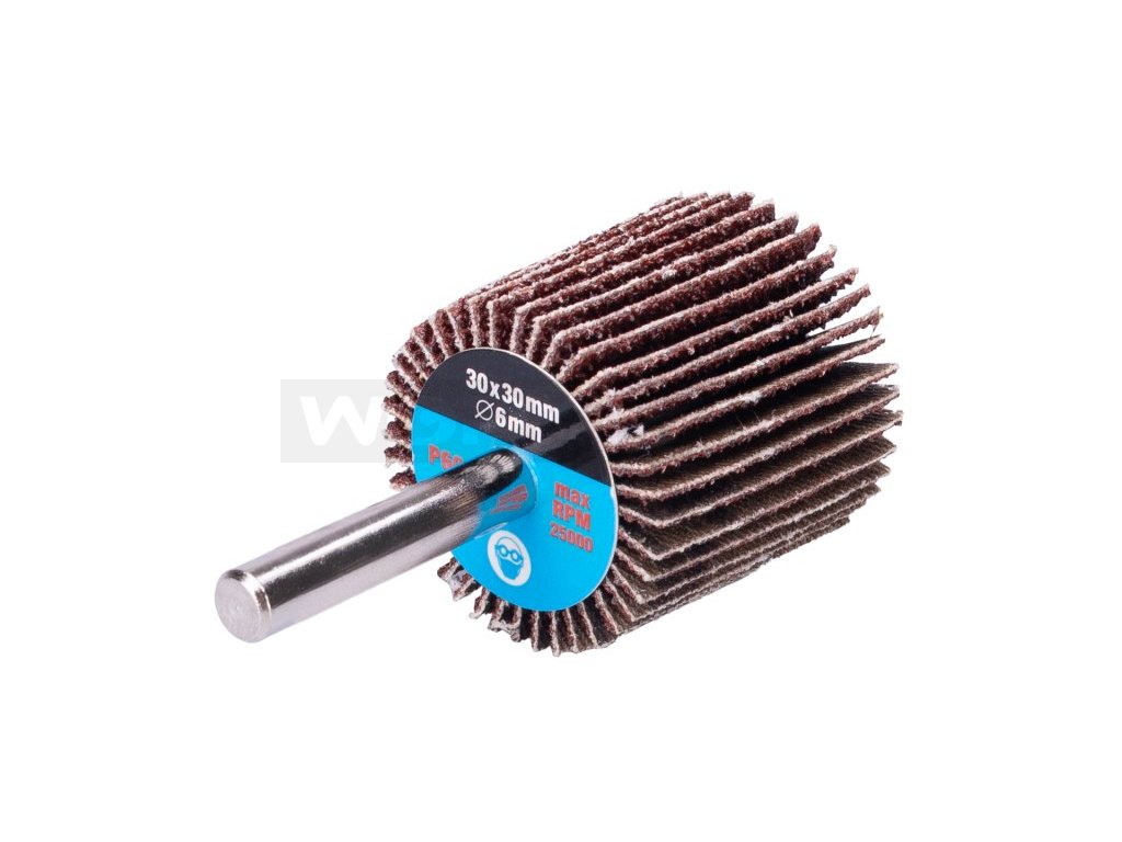 Brusný lamelový kotouč na stopce, zrnitost: 100 druh zrna: oxid hlinitý pojivo: umělá pryskyřice podkladový materiál: pružná tkanina - 100% bavlna (240-260g/m2) použití : broušení, obrušování, odrezování, odstraňování nátěrů.Doplňkové parametry