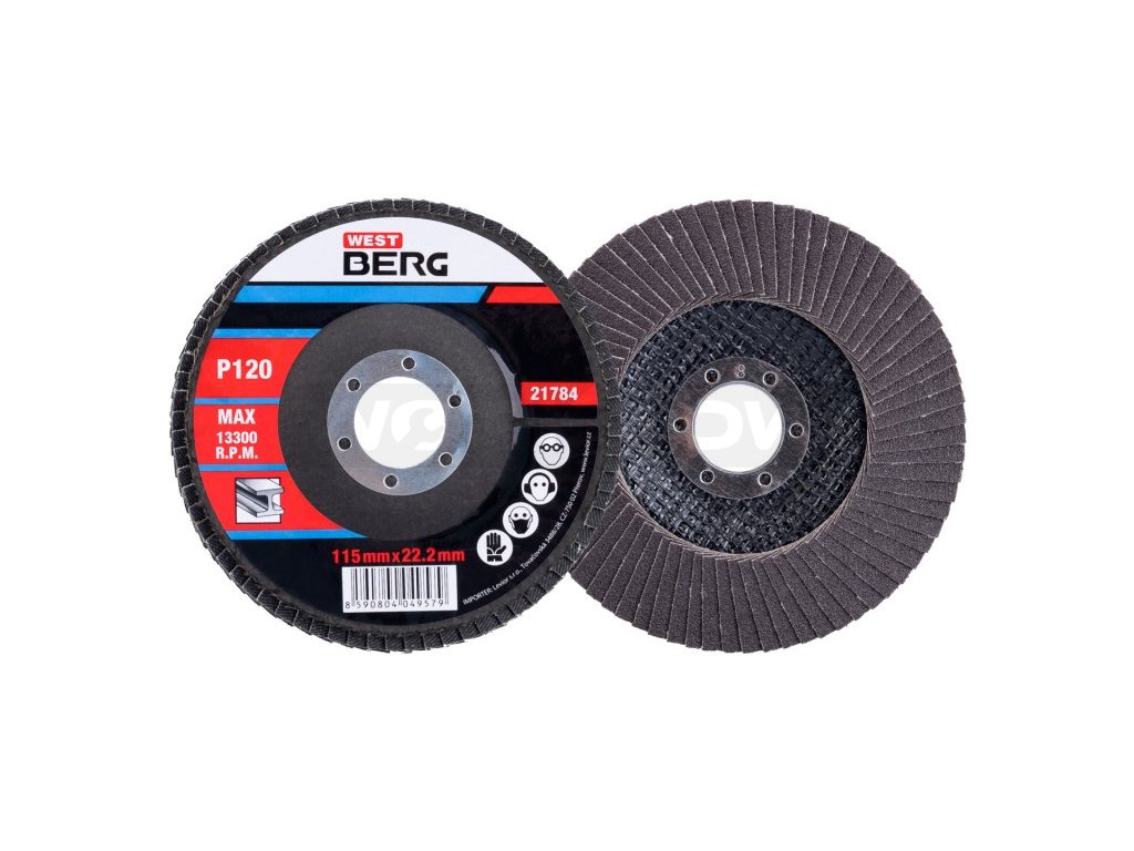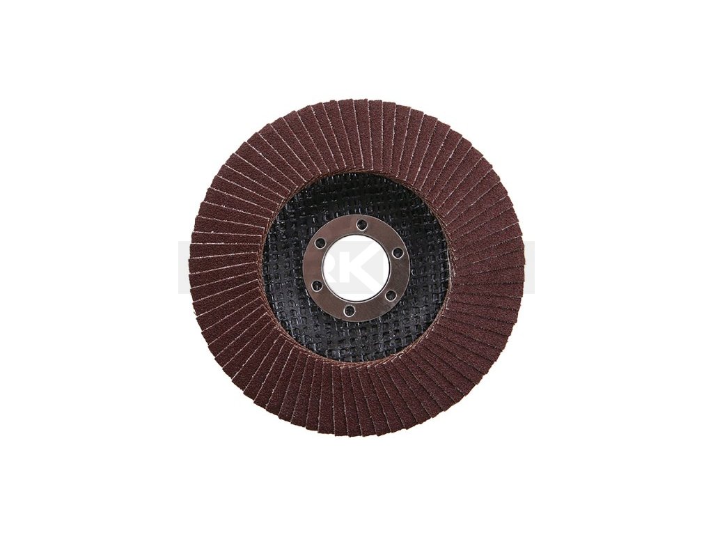 Lamelový kotouč, zrnitost: 120 druh zrna: oxid hlinitý pojivo: umělá pryskyřice podkladový materiál: pružná tkanina - 100% bavlna (240-260g/m2) provedení: vyhnutý otvor : 22,2mm, max. pracovní rychlost : 80m/s, max. přípustné otáčky: 13300 1/min, použití : broušení, obrušování, odrezování, odstraňování nátěrů, ...., rozměry : uvedeny v názvu výrobku.Doplňkové parametry