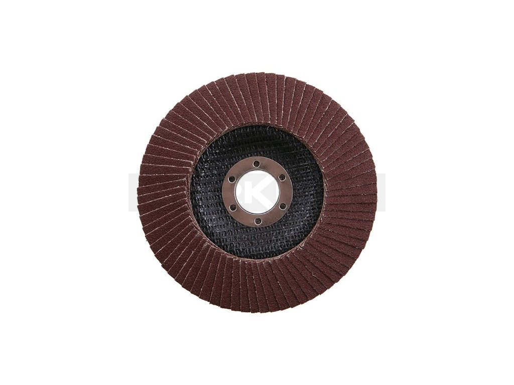 Lamelový kotouč, zrnitost: 120 druh zrna: oxid hlinitý pojivo: umělá pryskyřice podkladový materiál: pružná tkanina - 100% bavlna (240-260g/m2) provedení: vyhnutý otvor : 22,2mm, max. pracovní rychlost : 80m/s, max. přípustné otáčky: 13300 1/min, použití : broušení, obrušování, odrezování, odstraňování nátěrů, ...., rozměry : uvedeny v názvu výrobku.