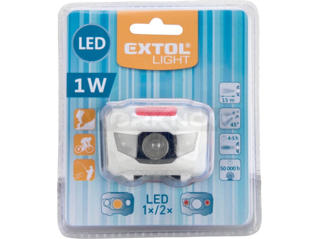 Čelovka 40lm, 1W + 2 červené LED, ABS plast