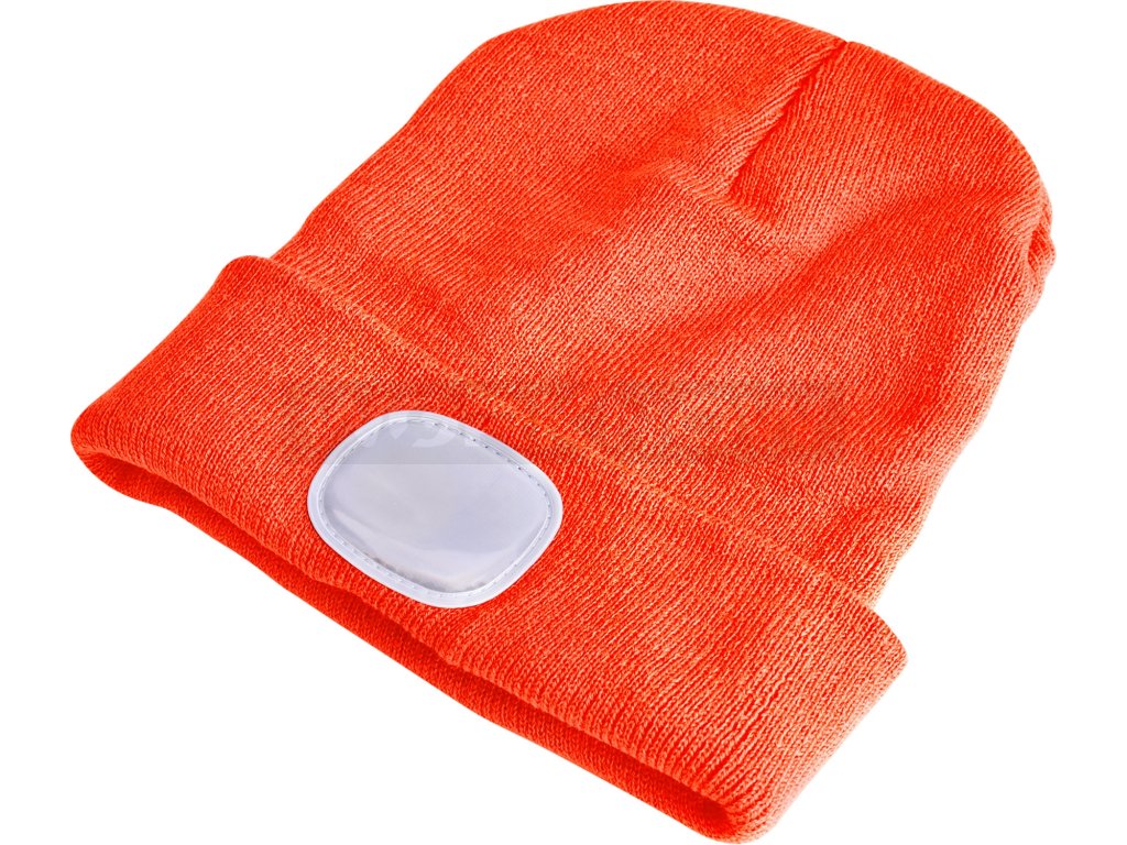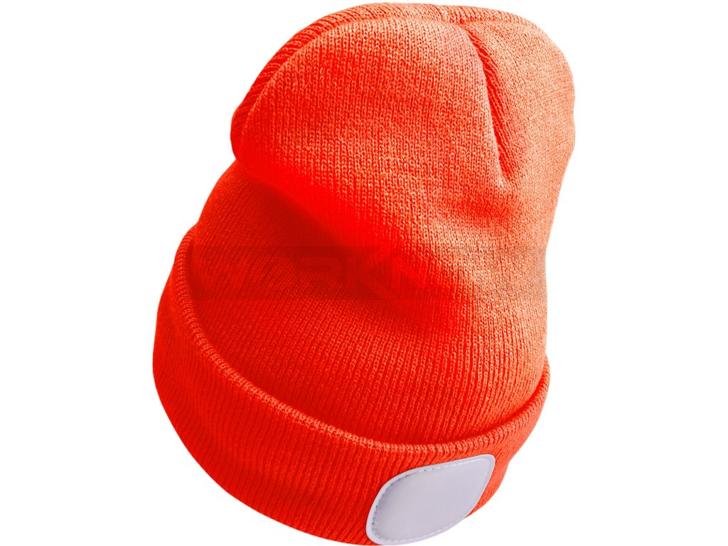 Čepice s čelovkou 4x25lm, USB nabíjení, fluorescentní oranžová, ECONOMY, univerzální velikost, 100% acryl