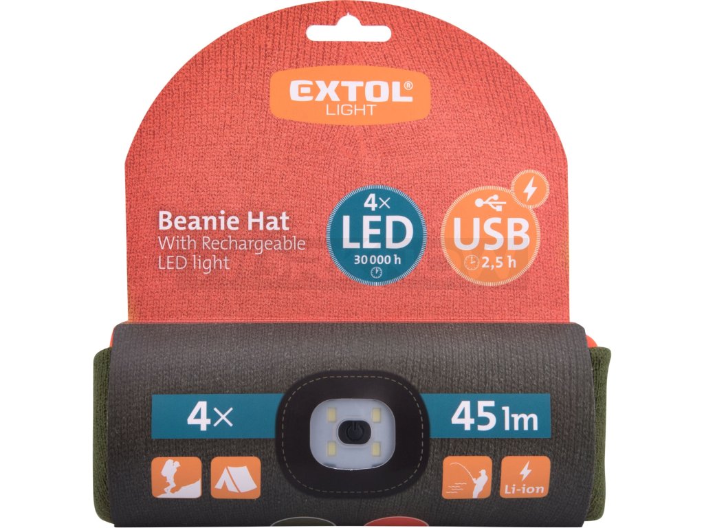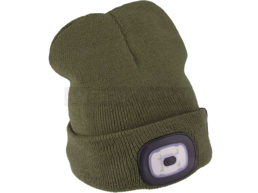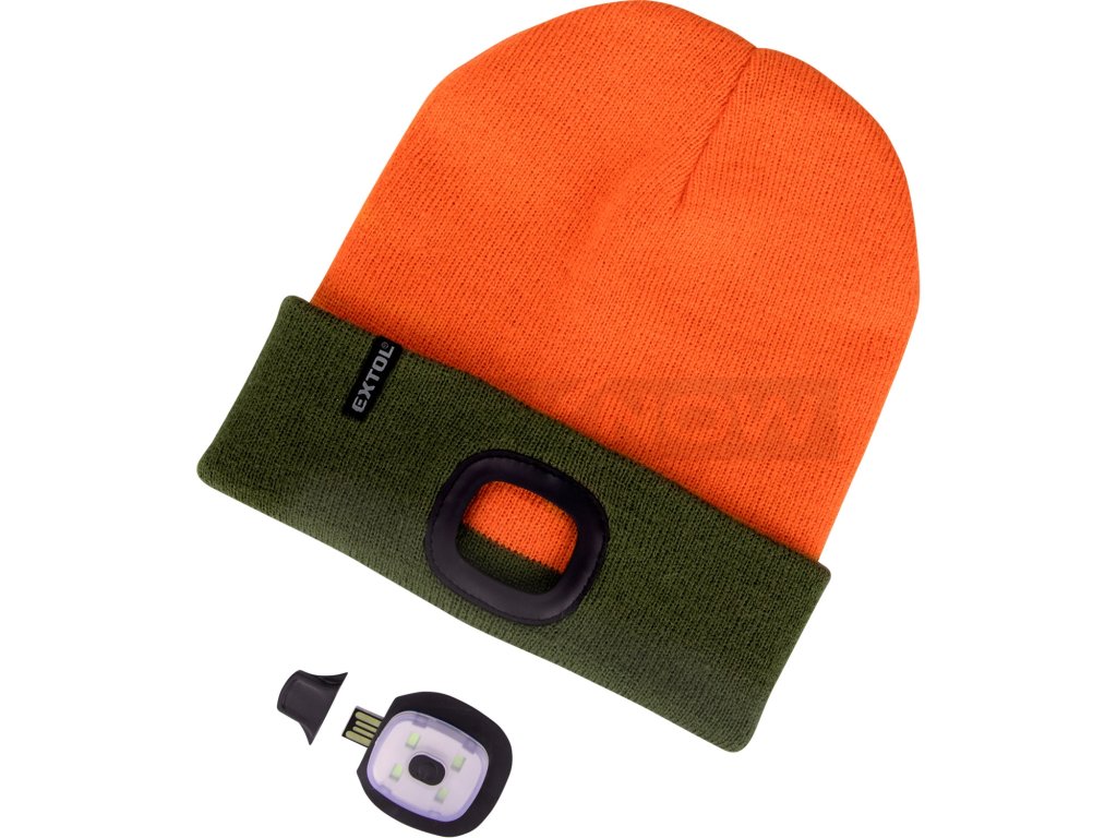 Čepice s čelovkou 4x45lm, USB nabíjení, fluorescentní oranžová/khaki zelená, oboustranná, univerzální velikost, 100% acryl