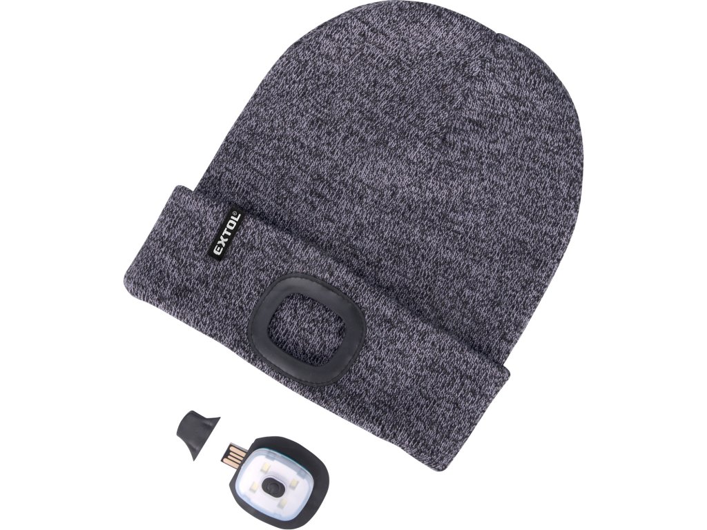 Čepice s čelovkou 4x45lm, USB nabíjení, šedá/černá, univerzální velikost, 100% acryl