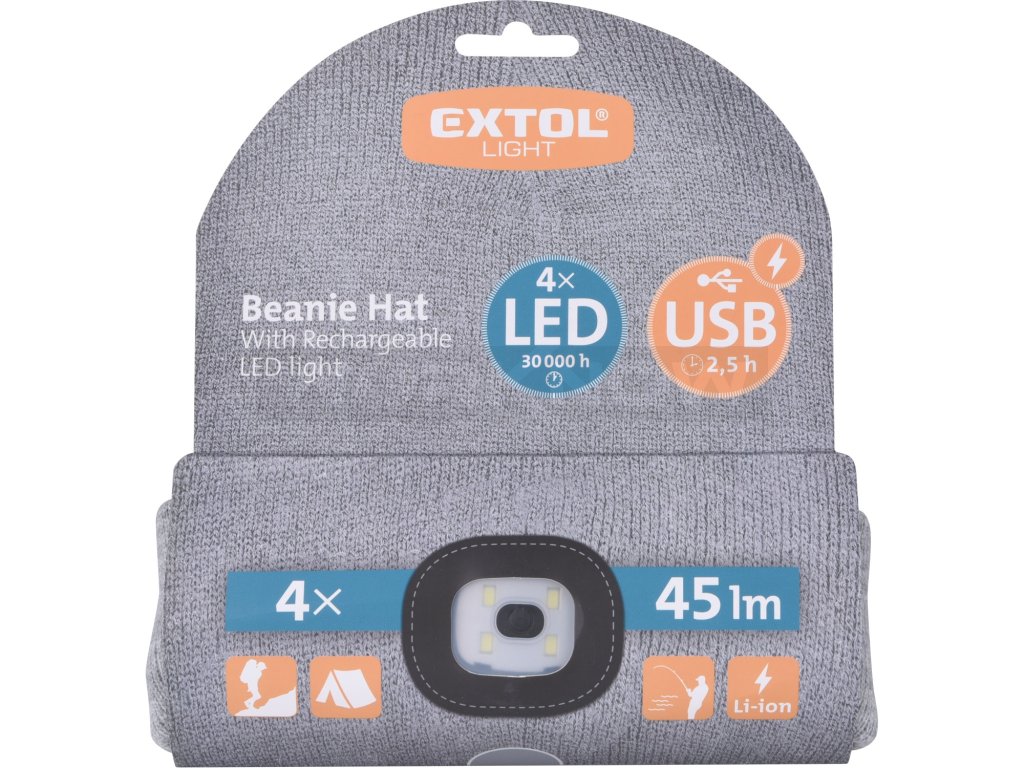 čepice s čelovkou 4x45lm, USB nabíjení, univerzální velikost, různé barvy