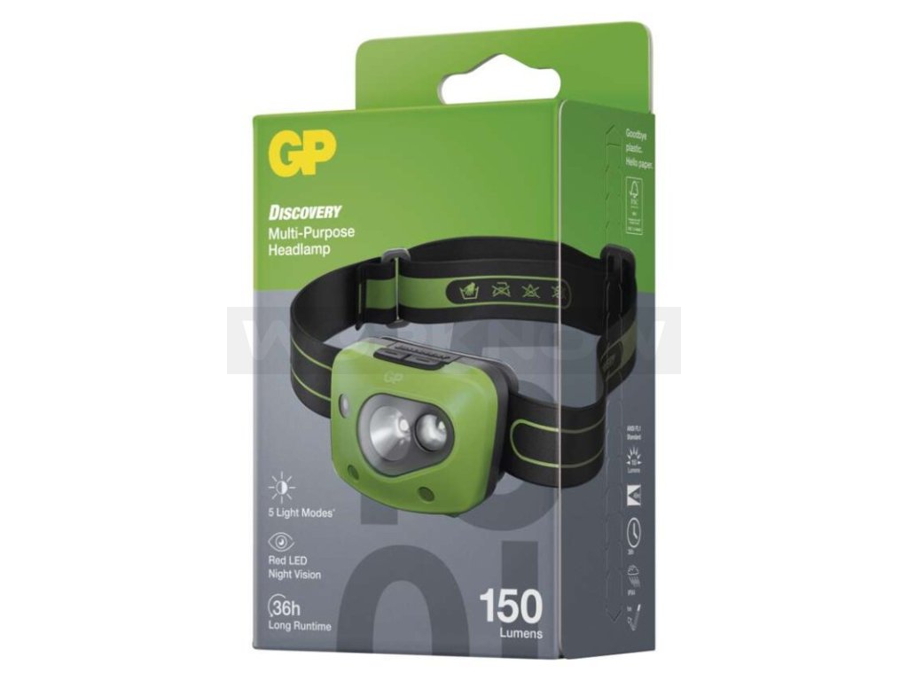 Nápaditý design a zároveň praktický, omyvatelný a bezpečný pásek v jednom? I to nabízí naše čelovka GP Discovery CH43.