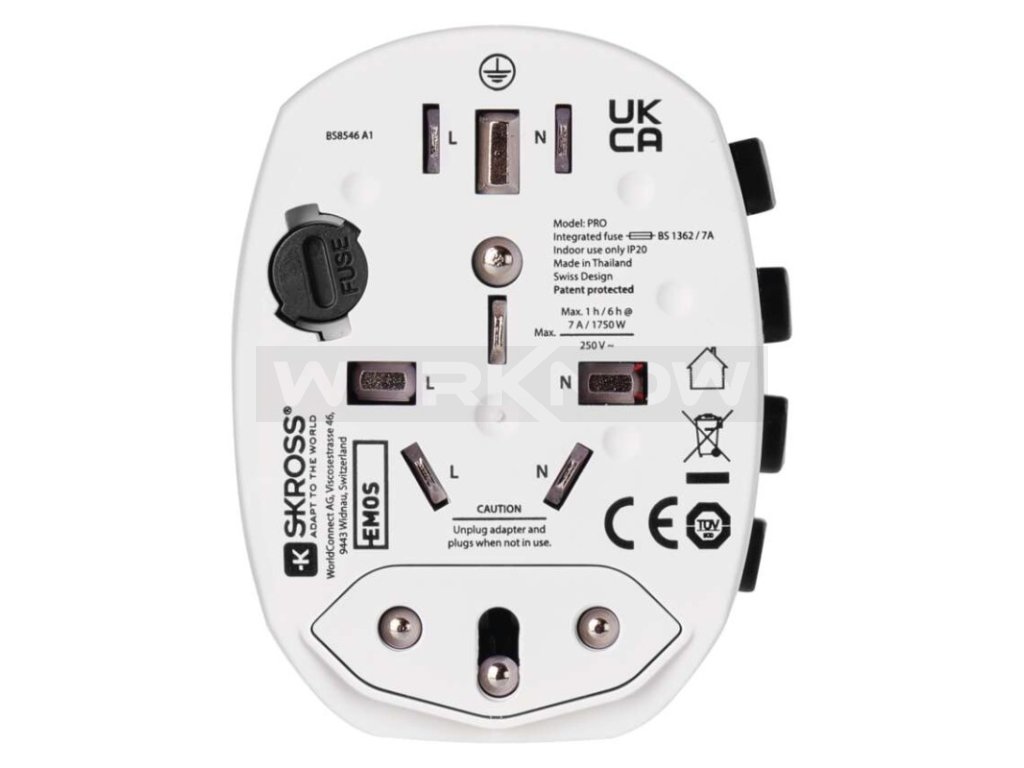 Chystáte se na dovolenou do zahraničí? Nezapomeňte si přibalit cestovní adaptér, ať vás nepřekvapí jiný typ zásuvek a vy si můžete snadno zapojit váš spotřebič do el. sítě. Adaptér je vhodný i pro výkonější zařízení jako notebook či vysoušeč vlasů (napětí/proud: 250 V~/7 A max.). Ve Švýcarsku vyvíjený adaptér zaručuje bezpečnou kvalitu na cesty.