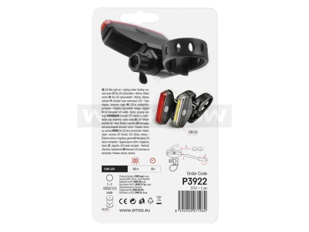 LED přední + zadní svítilna na kolo P3922 na 2× CR2032, 22 lm