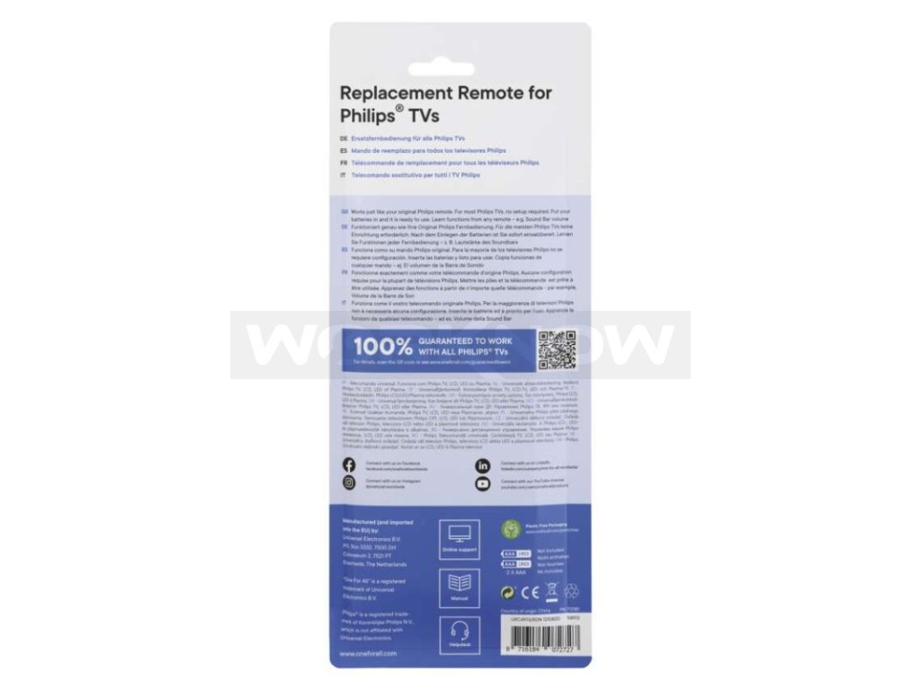 Dálkový ovladač, který nahrazuje originální ovladače všech televizorů PHILIPS. Plnohodnotná náhrada nefunkčních originálních ovladačů TV PHILIPS.