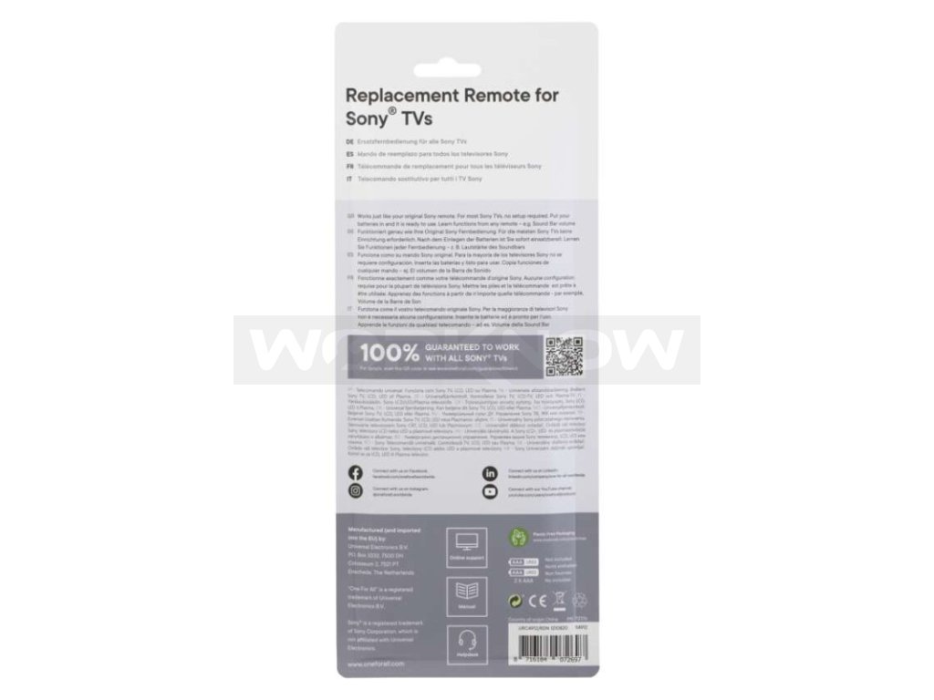 Dálkový ovladač, který nahrazuje originální ovladače všech televizorů SONY. Plnohodnotná náhrada nefunkčních originálních ovladačů TV SONY.