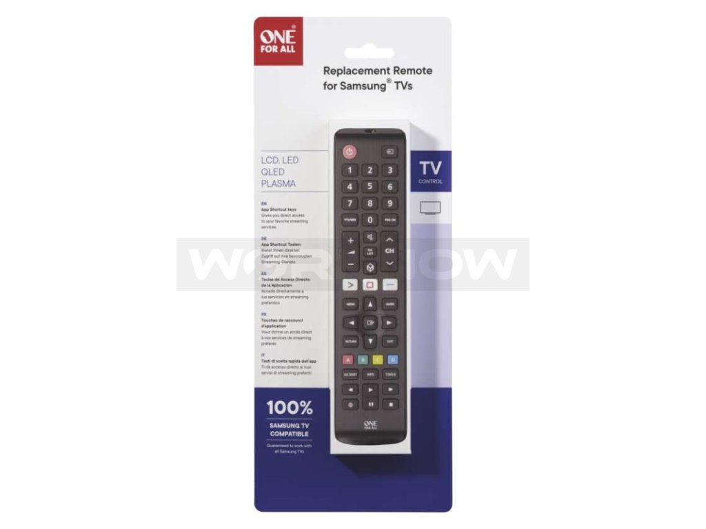 Dálkový ovladač, který nahrazuje originální ovladače všech televizorů Samsung. Plnohodnotná náhrada nefunkčních originálních ovladačů TV Samsung. Zajištění 100 % kompatibility ovládání televizorů Samsung.