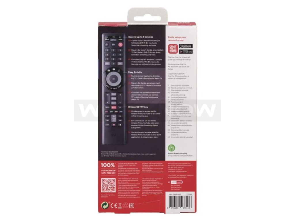 | Určeno pro: | TV, DVB-T, SAT, KAB TV, IPTV, DVD, Blu-ray, Zesilovač, Tuner, Domácí kino, CD, iPod Dock |