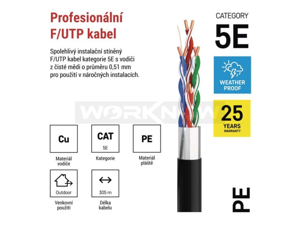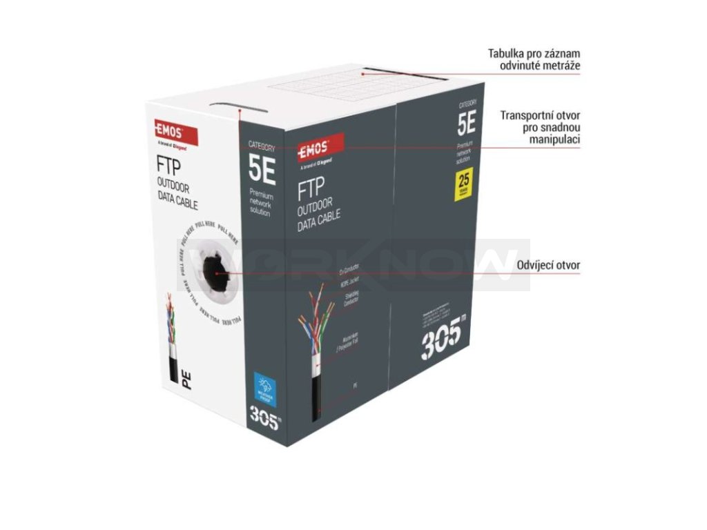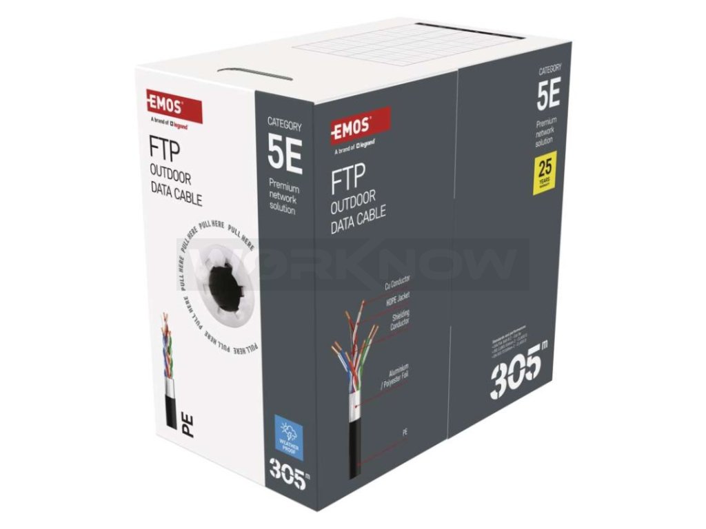 | Značení kabelu: | FTP Cat5E PE OUTDOOR 1 – 305 m |