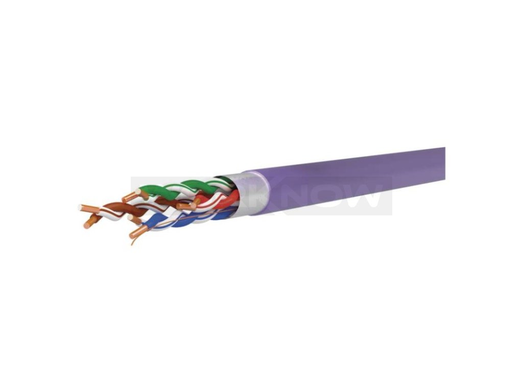 Stíněný horizontální kabel nejvyšší kvality kategorie CAT5E s LSOH (LSZH) pláštěm. Jádra vodičů vyrobeny z nerecyklované mědi. Kabel splňuje požadavky směrnice CPR o stavebních výrobcích.