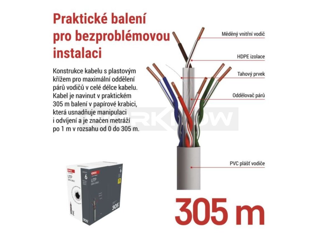 | Značení kabelu: | UTP CAT 6 PVC 1 – 305 m |