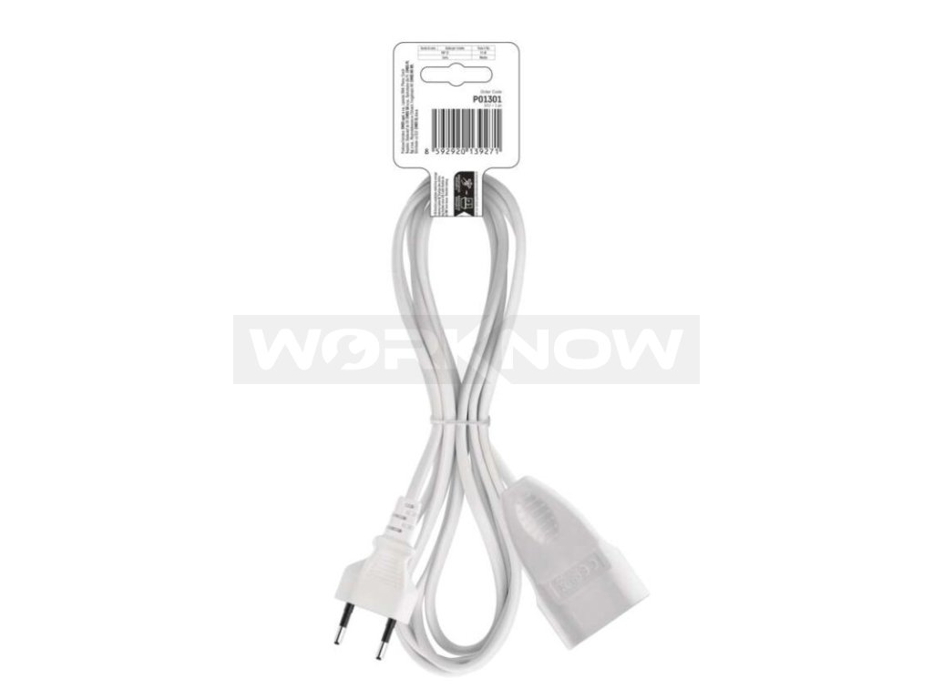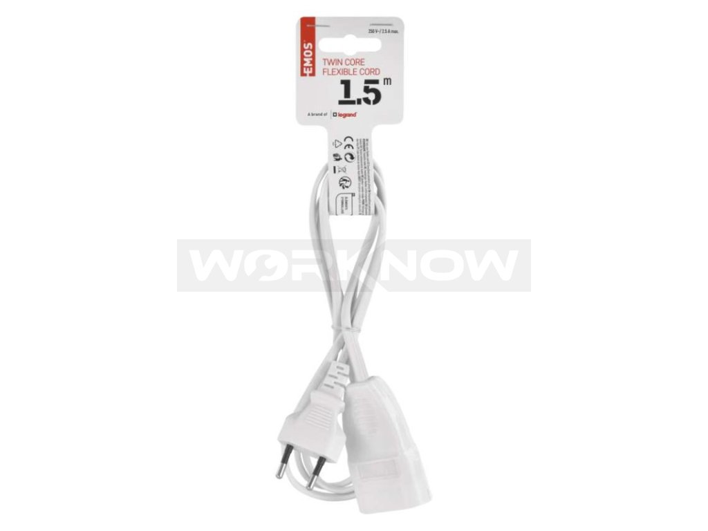 Pohyblivý přívod 1,5 m na 230 V~ slouží k prodloužení elektrické energie tam, kam pevná zásuvka nedosáhne.Max. zátěž 2,5 A (575 W). Určeno pro připojení spotřebičů třídy ochrany II.