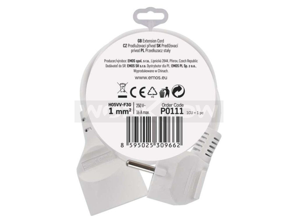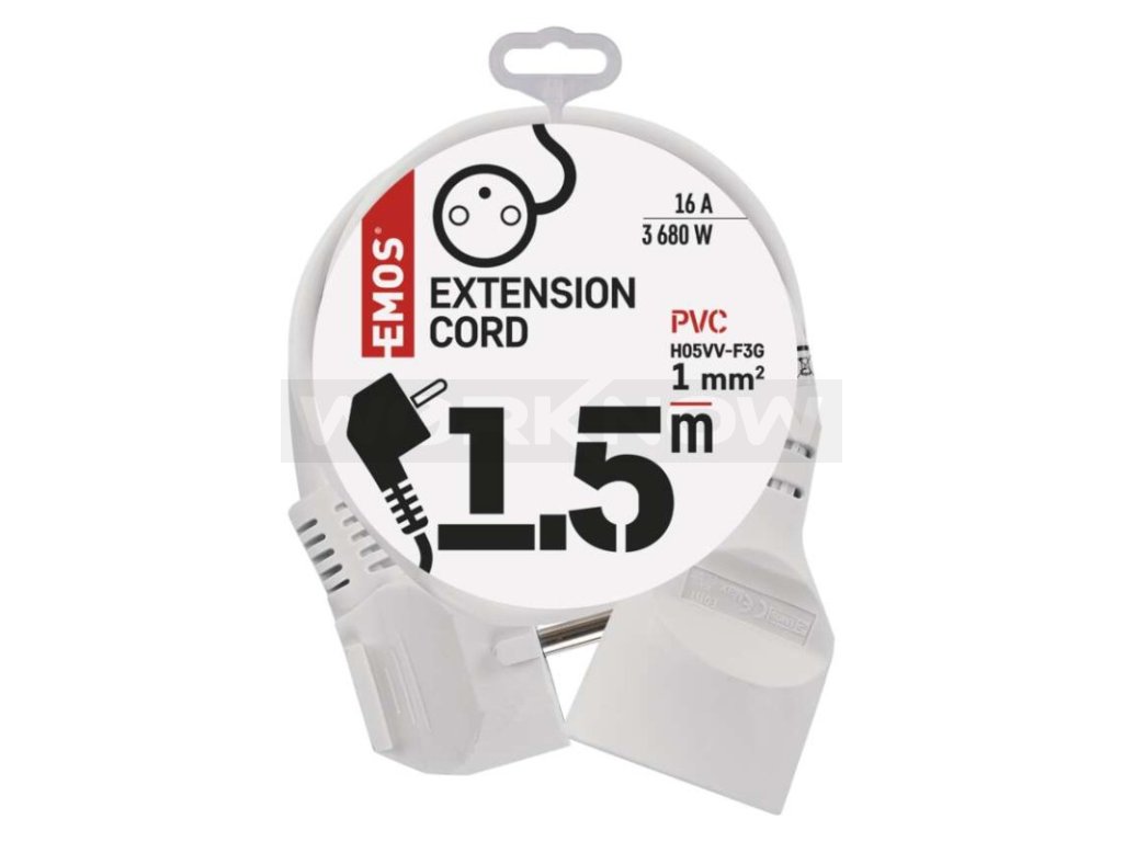 Prodlužovací přívod 1,5 m na 230 V~ slouží k prodloužení elektrické energie tam, kam pevná zásuvka nedosáhne.