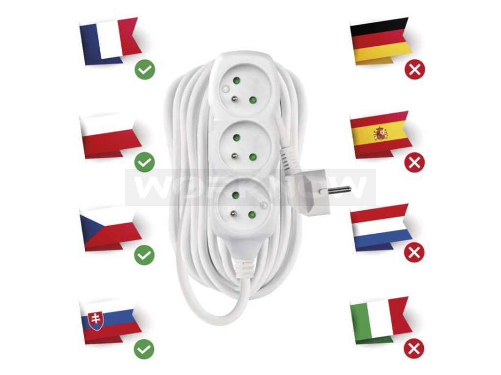 Při montáži na stěnu je nutné použít vrut se zápustnou hlavou PZ max. průměr 2,5–3 mm, délka 30–40 mm. V případě použití jiného průměru hrozí poškození plastové části otvoru. Pokud dojde k poškození plastové části otvoru, prodlužovací přívod nepoužívejte.