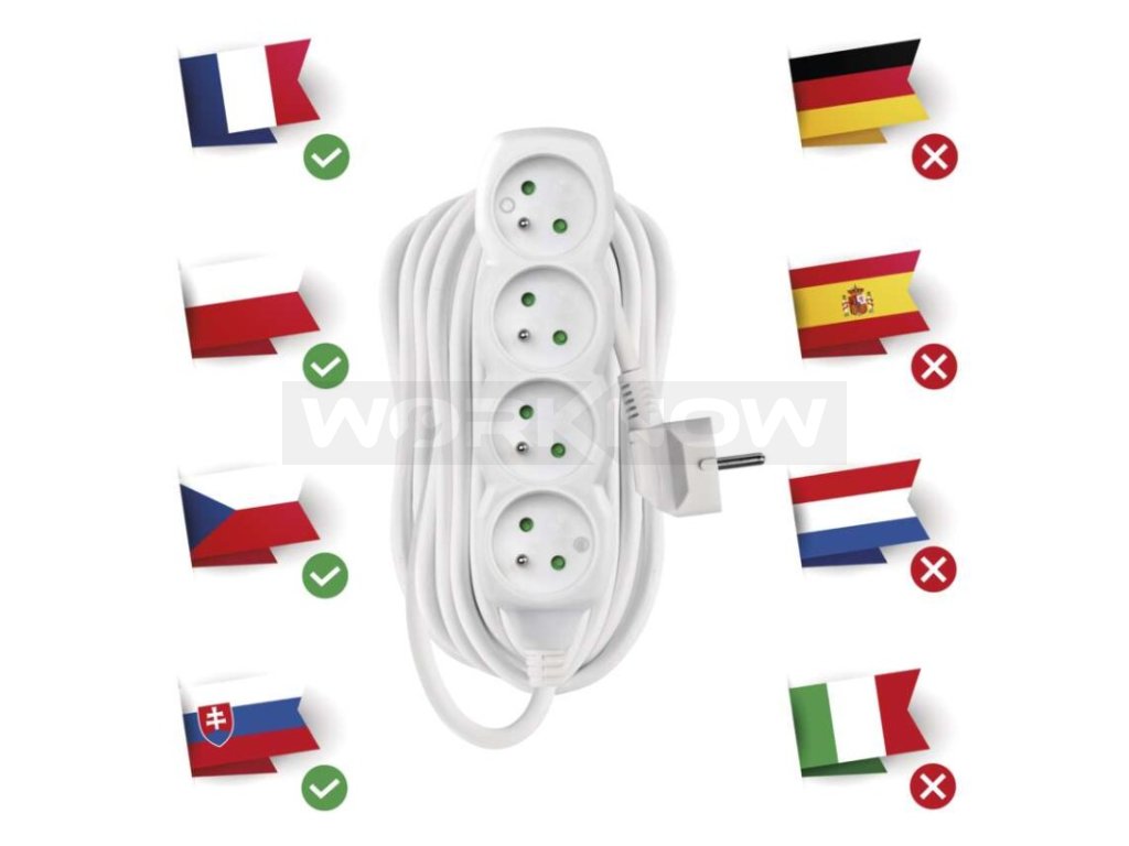 Prodlužovací kabel 10 m / 4 zásuvky / bílý / PVC / 1,5 mm2