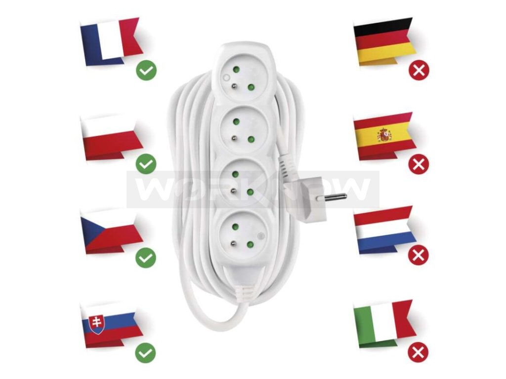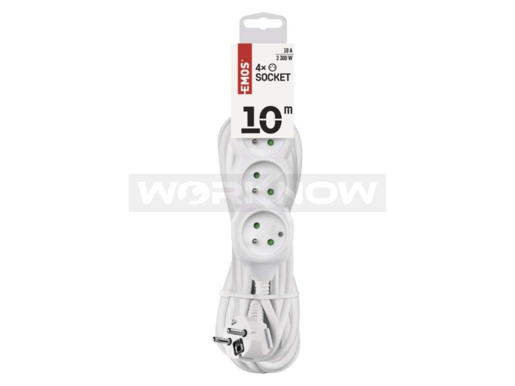 Prodlužovací kabel 10 m / 4 zásuvky / bílý / PVC / 1 mm2