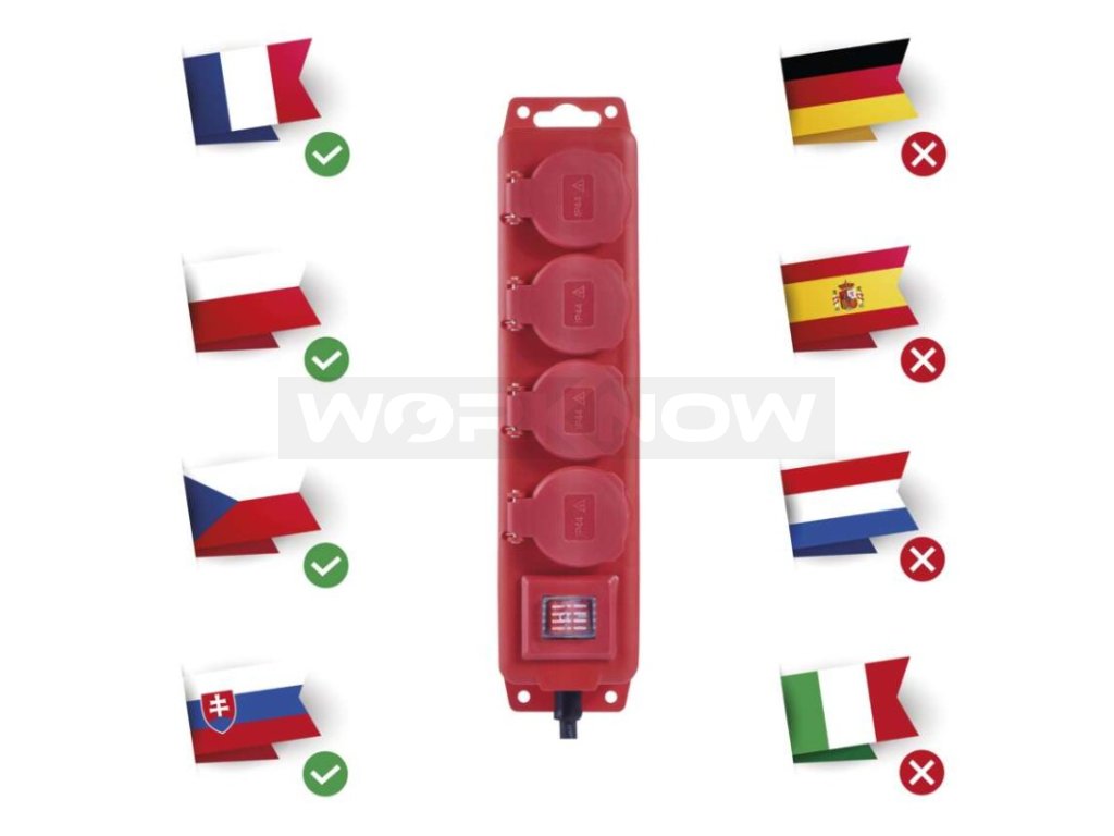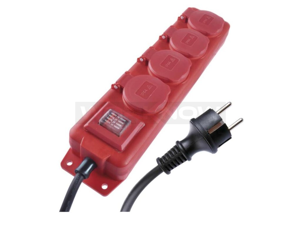 Neoprenový kabel - je určen pro použití na staveništích a pro trvalé použití ve venkovních prostorách,oleji odolný. Krytí IP44 - vhodné pro venkovní použití. Podsvícený 2pólový vypínač s krytkou. Možnost uchycení na zeď pomocí montážních otvorů, které jsou umístěny na těle zásuvkové lišty.