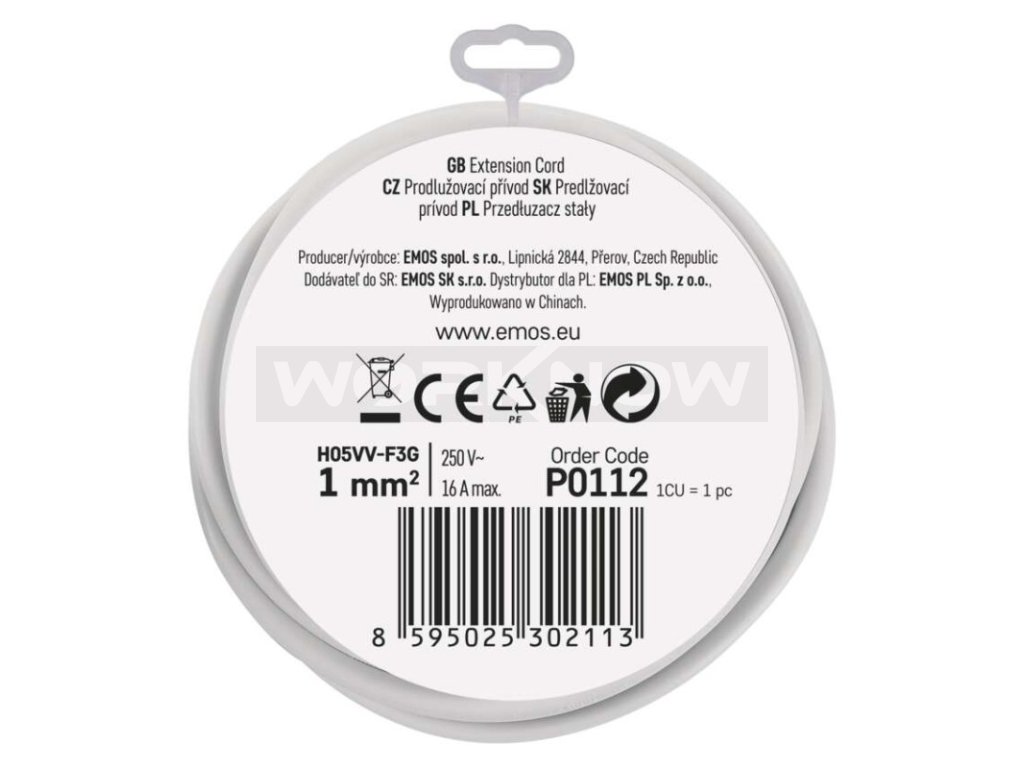 Prodlužovací přívod 2 m na 230 V~ slouží k prodloužení elektrické energie tam, kam pevná zásuvka nedosáhne.