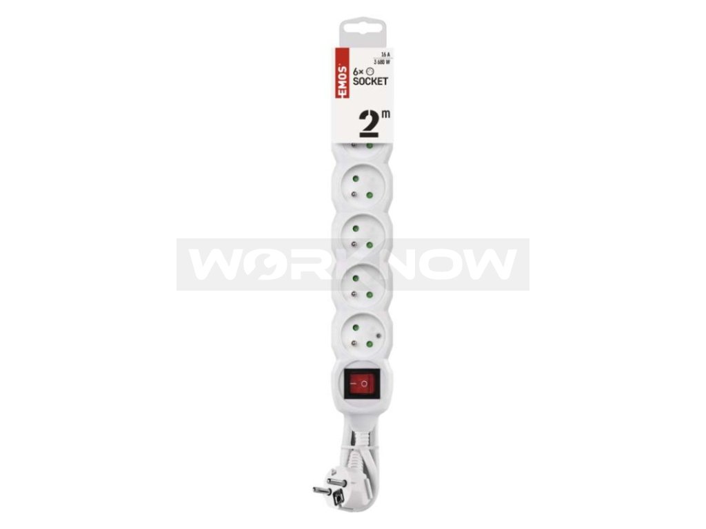 Prodlužovací kabel 2 m / 6 zásuvek / s vypínačem / bílý / PVC / 1 mm2