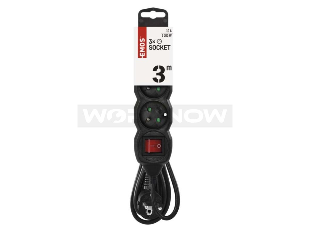 Prodlužovací kabel 3 m / 3 zásuvky / s vypínačem / černý / PVC / 1 mm2