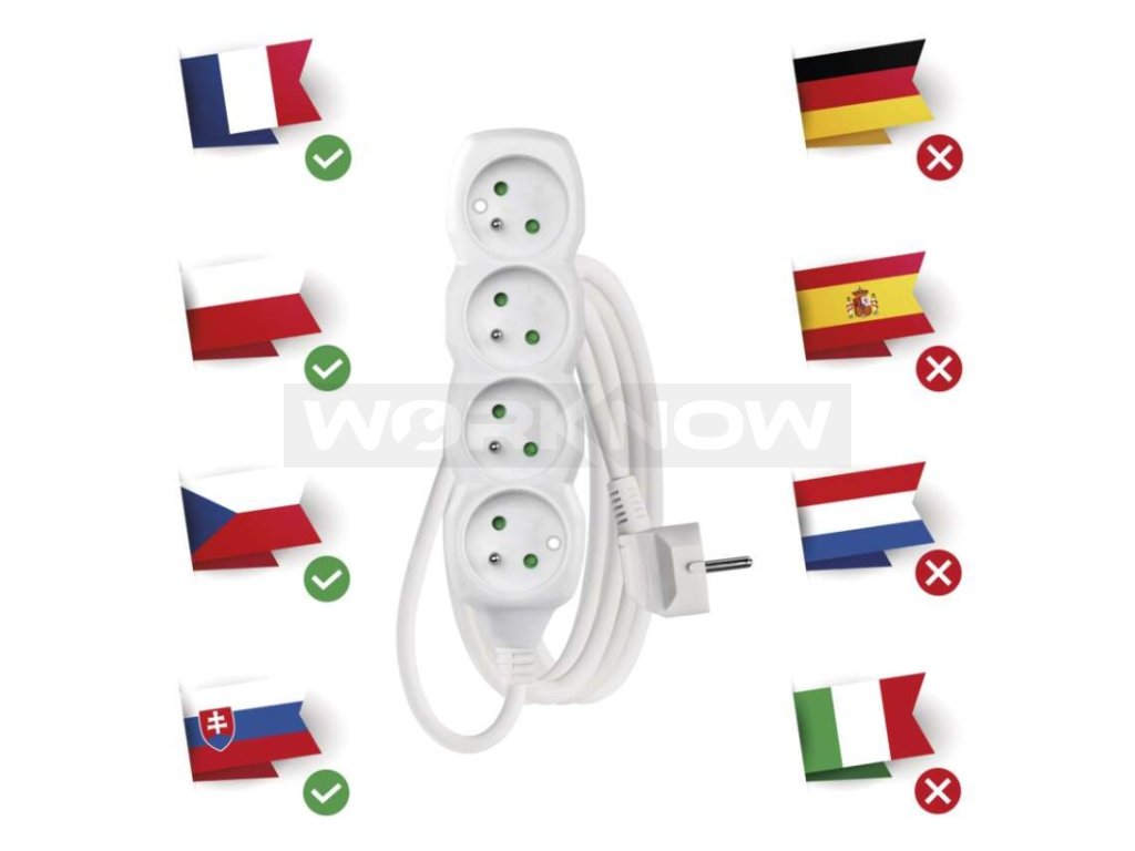 Prodlužovací kabel 3 m / 4 zásuvky / bílý / PVC / 1,5 mm2