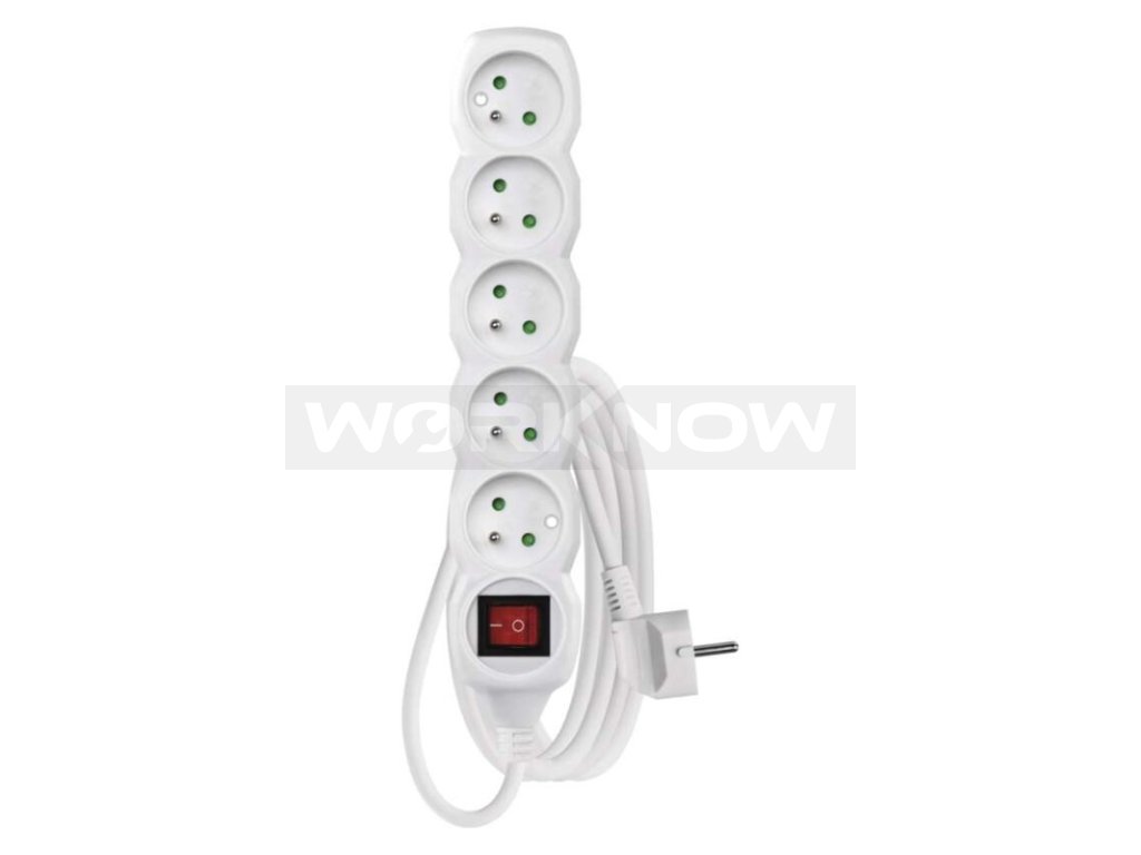 Prodlužovací kabel 3 m / 5 zásuvek / s vypínačem / bílý / PVC / 1,5 mm2