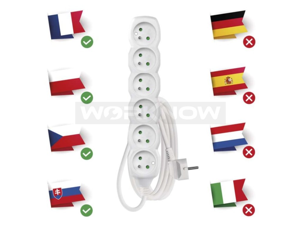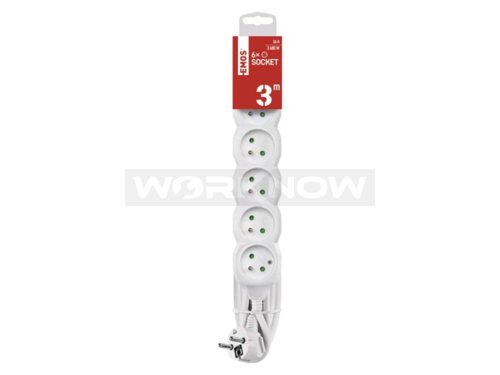 Prodlužovací kabel 3 m / 6 zásuvek / bílý / PVC / 1,5 mm2