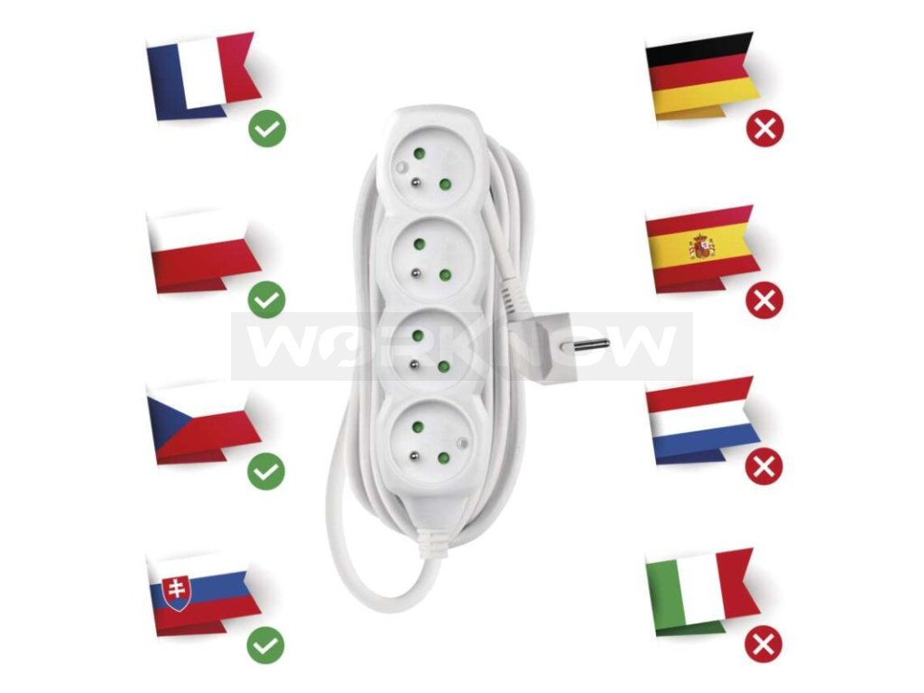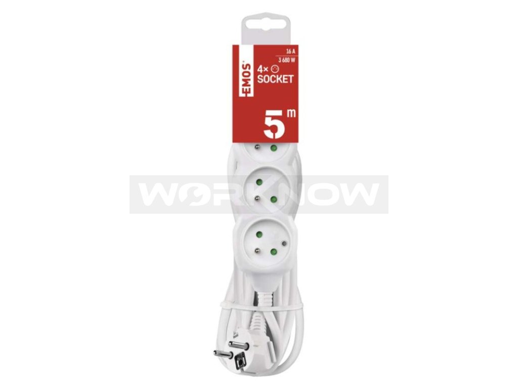 Prodlužovací kabel 5 m / 4 zásuvky / bílý / PVC / 1,5 mm2